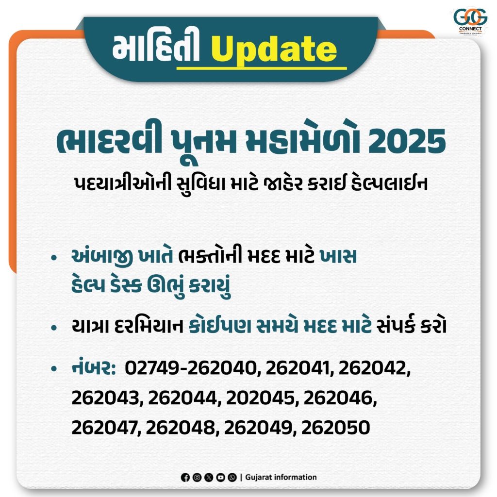 Ambaji : શક્તિપીઠ અને પવિત્ર યાત્રાધામ અંબાજીમાં આજથી તા. 7 સપ્ટેમ્બર સુધી સાત દિવસીય ભાદરવી પૂનમ મહામેળો 2025 યોજાઈ રહ્યો છે; દર્શનાર્થે આવતા લાખો શ્રદ્ધાળુઓની સેવા, સુવિધા અને સુરક્ષા માટે અનેકવિધ આયોજન
