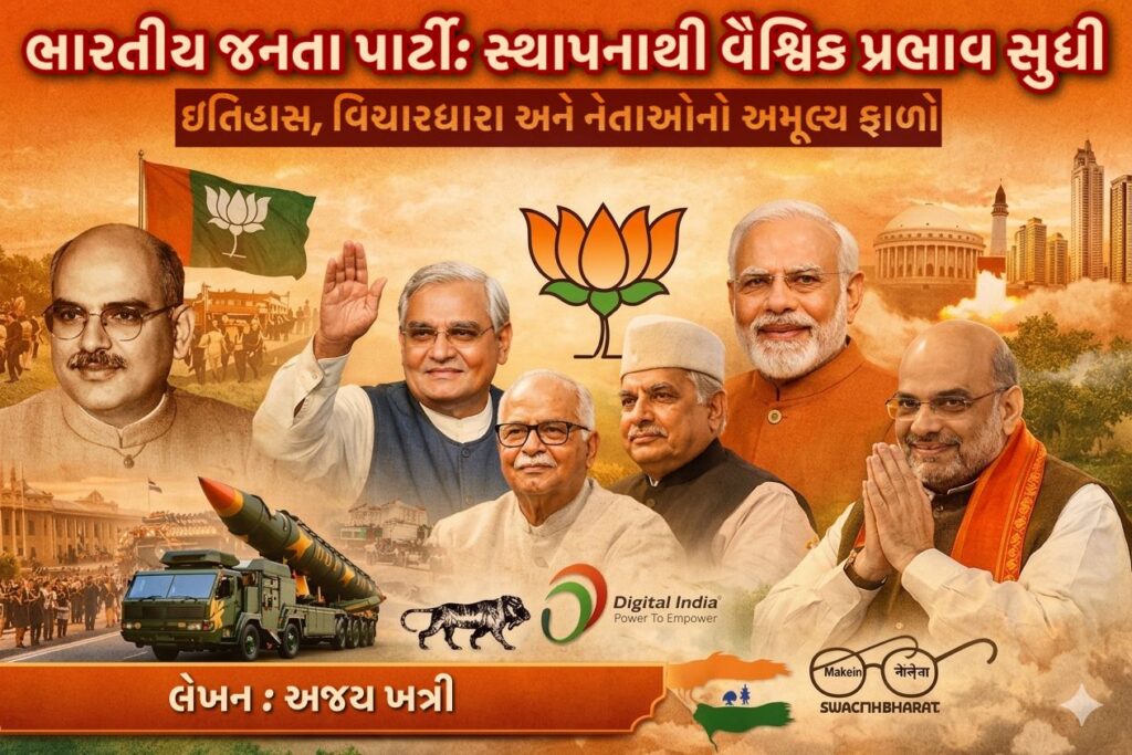 BJP “ભારતીય જનતા પાર્ટી: સ્થાપનાથી વૈશ્વિક પ્રભાવ સુધી ઇતિહાસ, વિચારધારા અને નેતાઓનો અમૂલ્ય ફાળો”